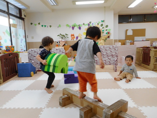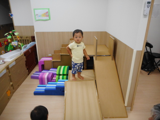 手押し車に平均台、乳児用滑り台から幼児用滑り台、秘密の場所では作戦会議(笑)