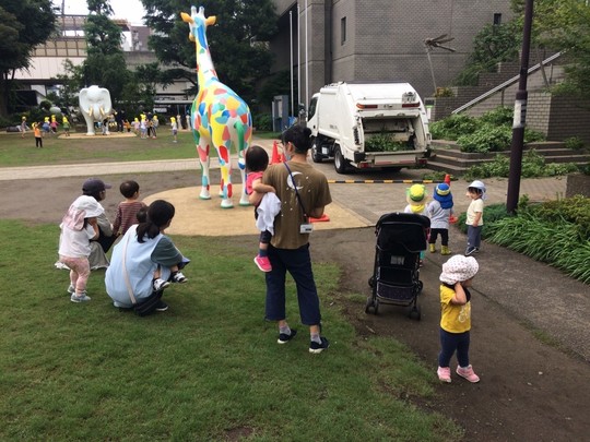 動物さん達がたくさんいる美術の森緑地が大好きな子ども達。今日も動物さん達に会いに出掛けてみると、そこには、動物さんにも匹敵する人気のゴミ収集車が、、、