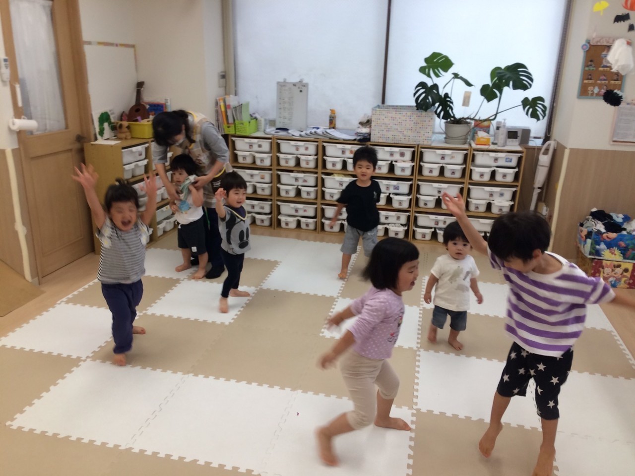 お部屋の中では、♪わぉ!♪ブンバボン♪エビカニクス♪ラーメン体操などの曲に合わせて体操をしたり、運動遊びなどをして、外でも中でもたくさん体を動かして遊びました。