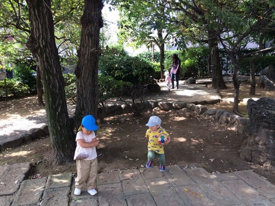 散歩日和な日が続く中、この日は上鷺東公園までお散歩に行ってきました。子どもと歩くと30分弱かかり、1歳の子からするとちょっとした遠足な距離ですが、大きい子に手を繋いでもらってよく歩きます(^^♪